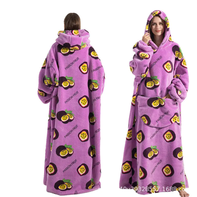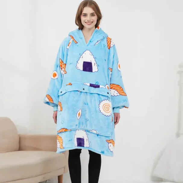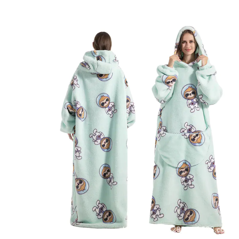 Hooded Women's Warm Flannel Pajamas Blanket -