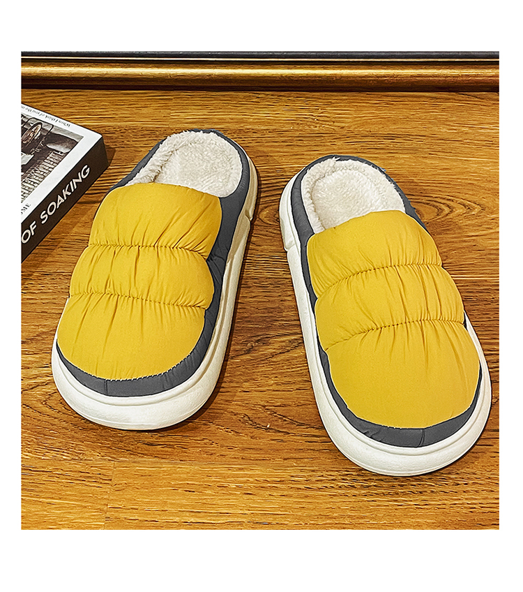 Featuring a plush interior, these slippers ensure that your feet are enveloped in soft cushioning with every step you take. The chic two-tone design not only adds a touch of style to your loungewear but also comes in a selection of vibrant colors including Blue, Coffee, Orange, and Yellow. Whether you prefer a classic look or a pop of color, we have an option for you!